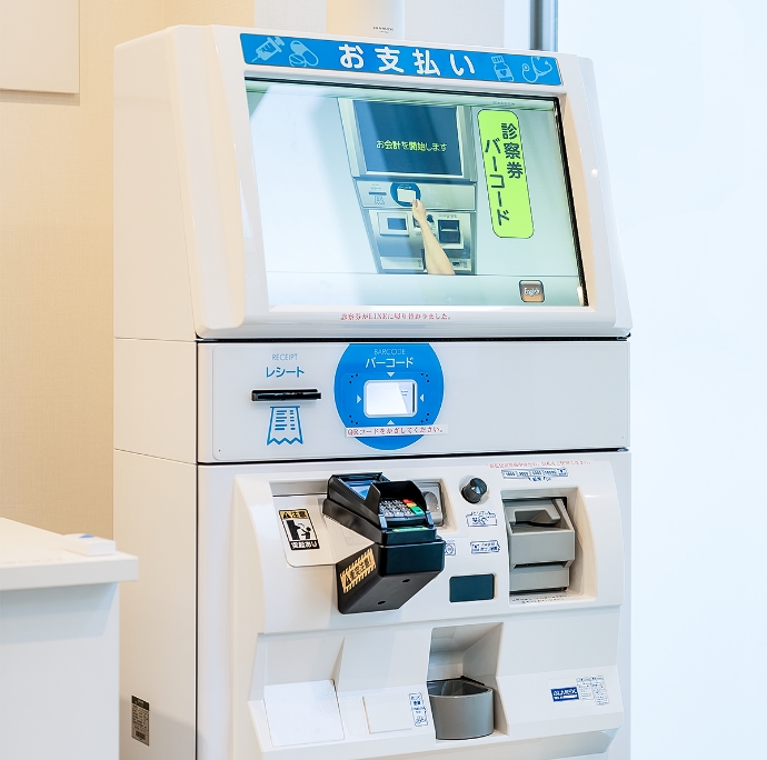 お会計もラクラク自動会計システムで無人対応。受付からお会計まで人と接触せずご対応いただけます。