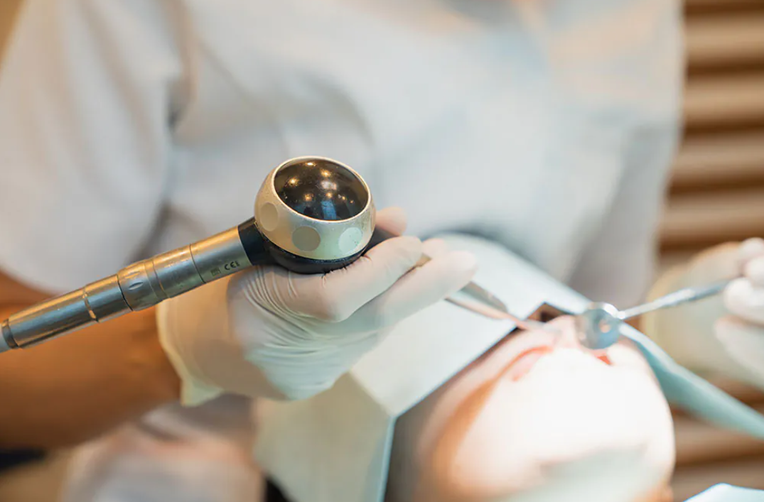 エアフローは、細かいパウダーと水を噴射して、歯ブラシでは落とせない着色やバイオフィルムをやさしく除去する器材です。